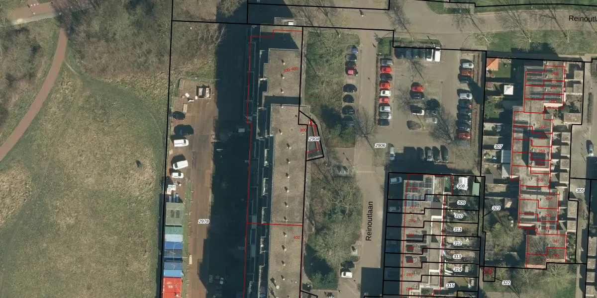 Reinoutlaan 302 is gelegen op kadastraal perceel GDP00F2978. Deze kadastrale aanduiding is uniek en wordt gebruikt door het Kadaster om eigendomsrechten en andere zakelijke rechten vast te leggen. Het perceel maakt onderdeel uit van de kadastrale gemeente Geldrop.