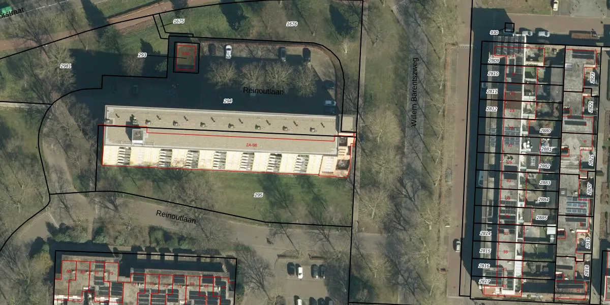 Reinoutlaan 32 is gelegen op kadastraal perceel GDP00F295. Deze kadastrale aanduiding is uniek en wordt gebruikt door het Kadaster om eigendomsrechten en andere zakelijke rechten vast te leggen. Het perceel maakt onderdeel uit van de kadastrale gemeente Geldrop.