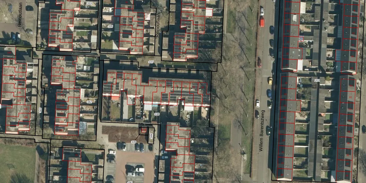 Het perceel waarop Reinoutlaan 33 staat heeft een oppervlakte van 3085 m². Dit is een zeer groot perceel. De perceeloppervlakte wordt geregistreerd door het Kadaster. Gedetailleerde informatie over de maten van dit perceel kunt u vinden in het rapport Kadastrale kaart met maatvoering van Reinoutlaan 33.