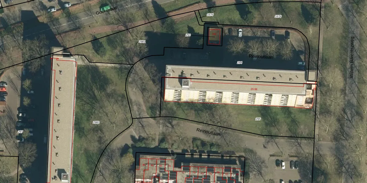 Reinoutlaan 38 is gelegen op kadastraal perceel GDP00F295. Deze kadastrale aanduiding is uniek en wordt gebruikt door het Kadaster om eigendomsrechten en andere zakelijke rechten vast te leggen. Het perceel maakt onderdeel uit van de kadastrale gemeente Geldrop.