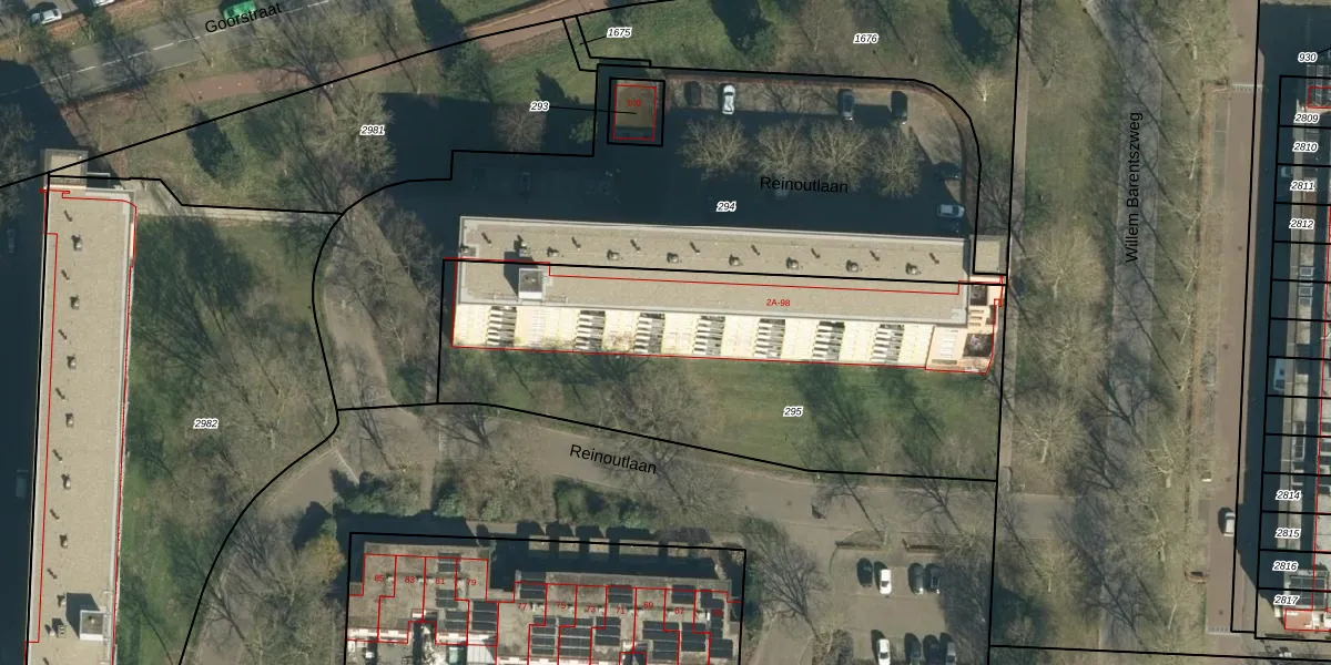 Het perceel waarop Reinoutlaan 58 staat heeft een oppervlakte van 2204 m². Dit is een zeer groot perceel. De perceeloppervlakte wordt geregistreerd door het Kadaster. Gedetailleerde informatie over de maten van dit perceel kunt u vinden in het rapport Kadastrale kaart met maatvoering van Reinoutlaan 58.