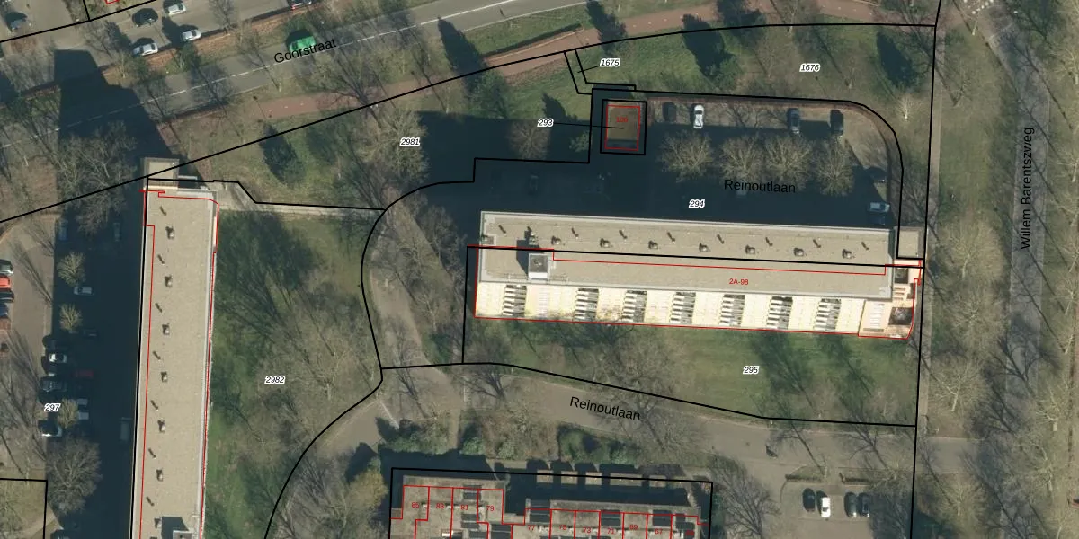 Het perceel waarop Reinoutlaan 6 staat heeft een oppervlakte van 2204 m². Dit is een zeer groot perceel. De perceeloppervlakte wordt geregistreerd door het Kadaster. Gedetailleerde informatie over de maten van dit perceel kunt u vinden in het rapport Kadastrale kaart met maatvoering van Reinoutlaan 6.