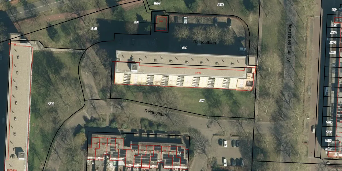 Het perceel waarop Reinoutlaan 90 staat heeft een oppervlakte van 2204 m². Dit is een zeer groot perceel. De perceeloppervlakte wordt geregistreerd door het Kadaster. Gedetailleerde informatie over de maten van dit perceel kunt u vinden in het rapport Kadastrale kaart met maatvoering van Reinoutlaan 90.
