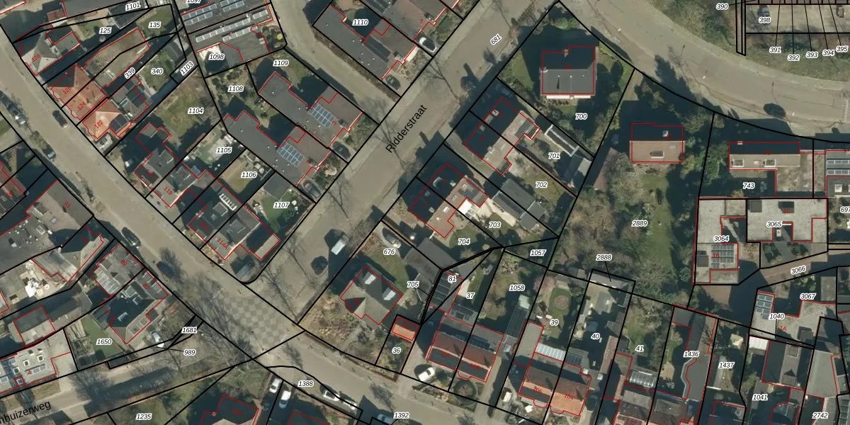Ridderstraat 2 is gelegen op kadastraal perceel GDP00E704. Deze kadastrale aanduiding is uniek en wordt gebruikt door het Kadaster om eigendomsrechten en andere zakelijke rechten vast te leggen. Het perceel maakt onderdeel uit van de kadastrale gemeente Geldrop.