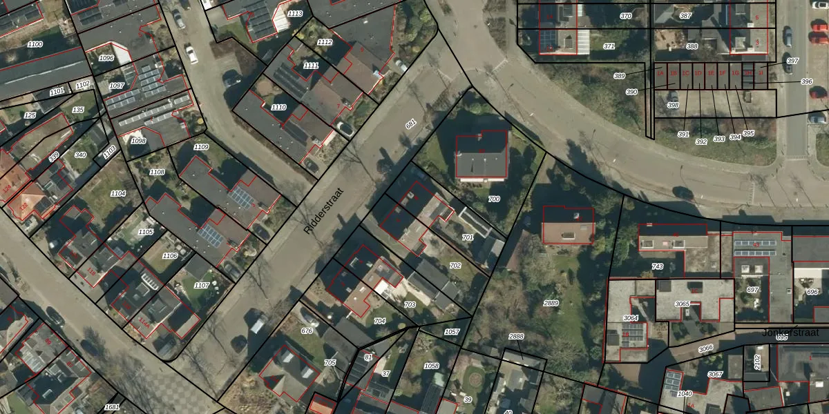 Ridderstraat 8 is gelegen op kadastraal perceel GDP00E701. Deze kadastrale aanduiding is uniek en wordt gebruikt door het Kadaster om eigendomsrechten en andere zakelijke rechten vast te leggen. Het perceel maakt onderdeel uit van de kadastrale gemeente Geldrop.