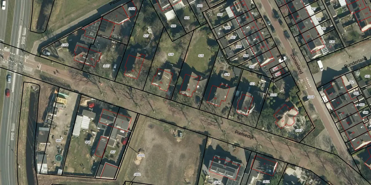 Rielsedijk 16 is gelegen op kadastraal perceel GDP00K515. Deze kadastrale aanduiding is uniek en wordt gebruikt door het Kadaster om eigendomsrechten en andere zakelijke rechten vast te leggen. Het perceel maakt onderdeel uit van de kadastrale gemeente Geldrop.