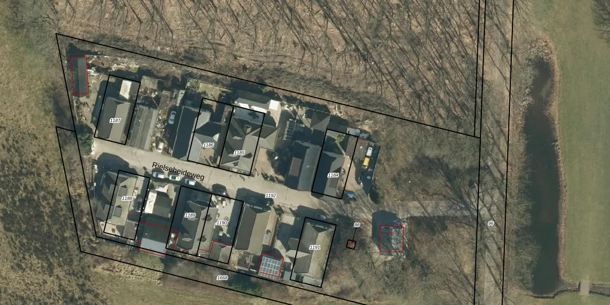 Het perceel waarop Rielseheideweg 3 staat heeft een oppervlakte van 6653 m². Dit is een zeer groot perceel. De perceeloppervlakte wordt geregistreerd door het Kadaster. Gedetailleerde informatie over de maten van dit perceel kunt u vinden in het rapport Kadastrale kaart met maatvoering van Rielseheideweg 3.