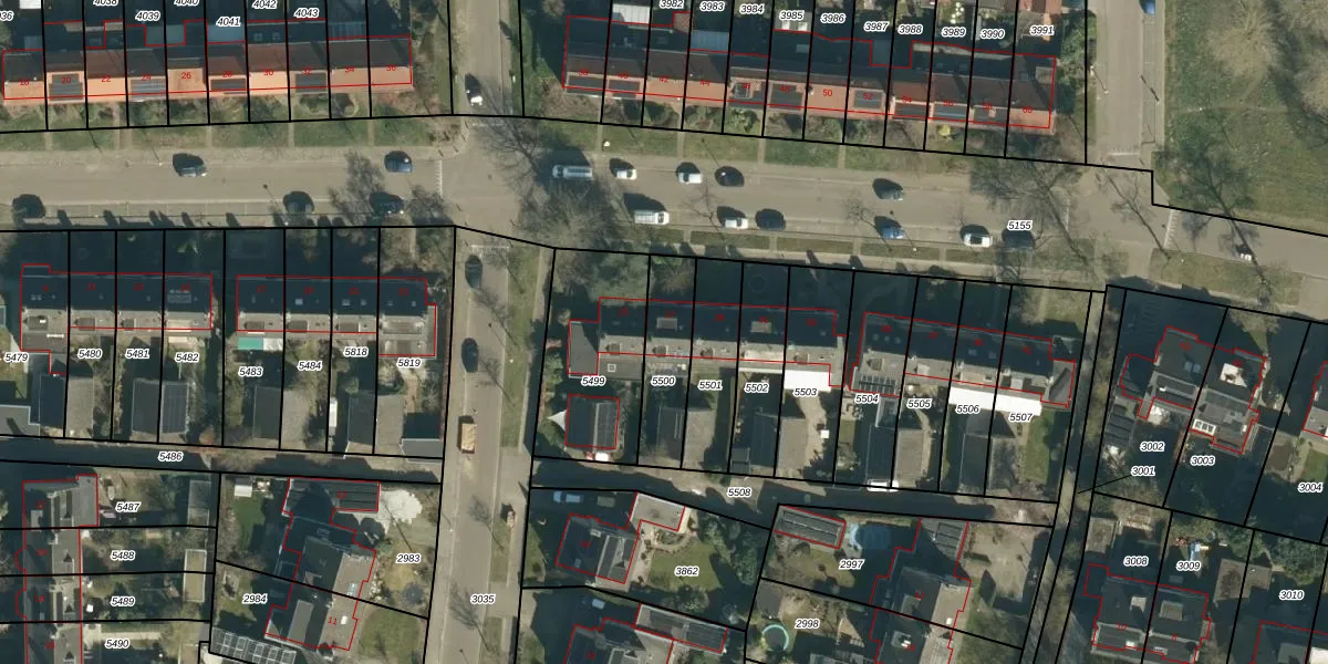 Gebruik de zoekbalk of klik op een perceel voor informatie over de adressen binnen dit perceel.