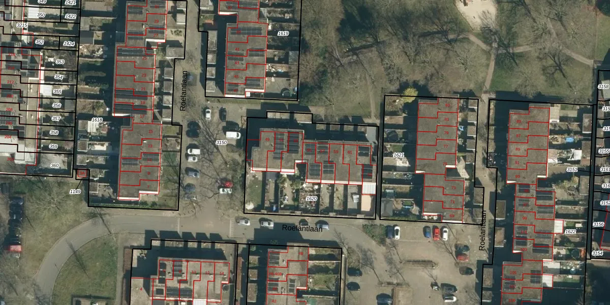 Roelantlaan 55 is gelegen op kadastraal perceel GDP00F1620. Deze kadastrale aanduiding is uniek en wordt gebruikt door het Kadaster om eigendomsrechten en andere zakelijke rechten vast te leggen. Het perceel maakt onderdeel uit van de kadastrale gemeente Geldrop.