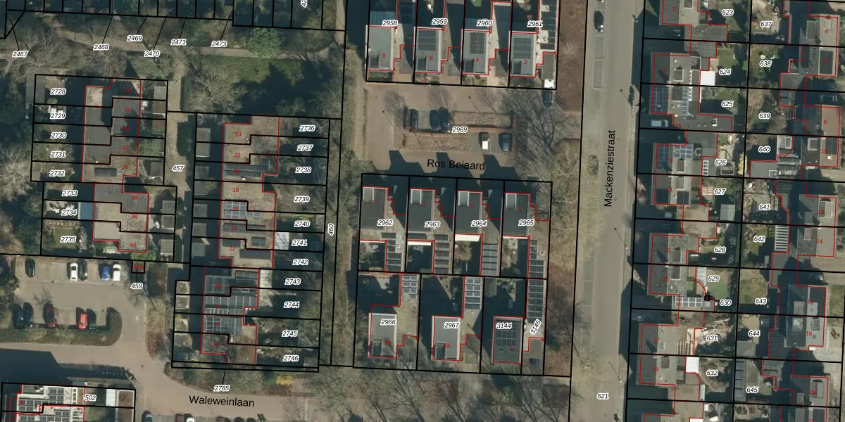 Gebruik de zoekbalk of klik op een perceel voor informatie over de adressen binnen dit perceel.