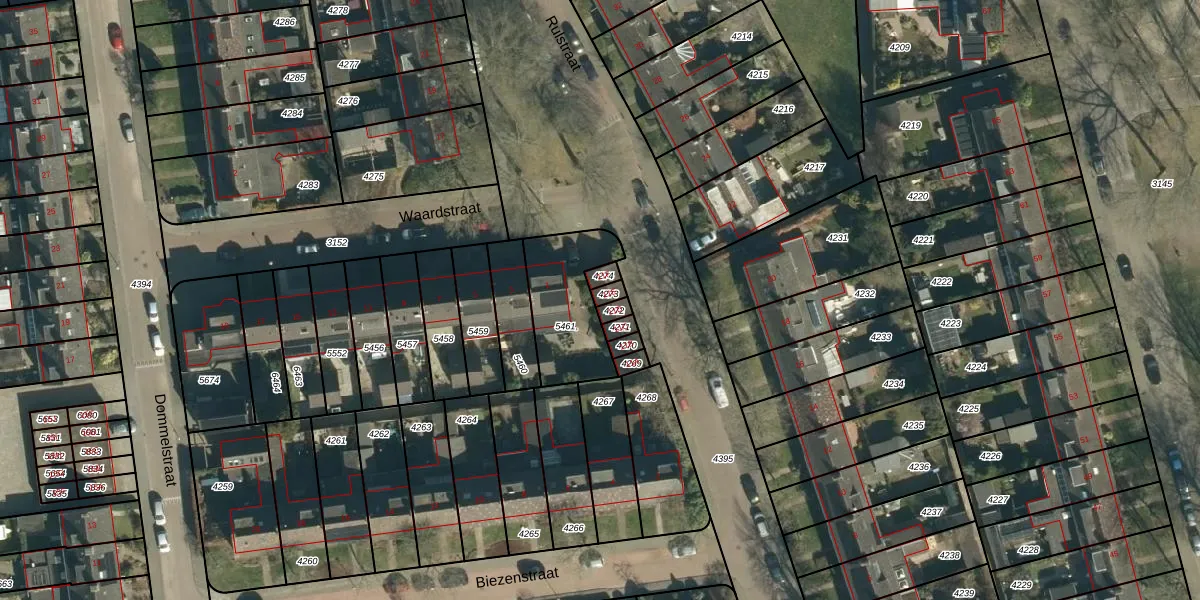 Rulstraat 11-E is gelegen op kadastraal perceel GDP00D4273. Deze kadastrale aanduiding is uniek en wordt gebruikt door het Kadaster om eigendomsrechten en andere zakelijke rechten vast te leggen. Het perceel maakt onderdeel uit van de kadastrale gemeente Geldrop.