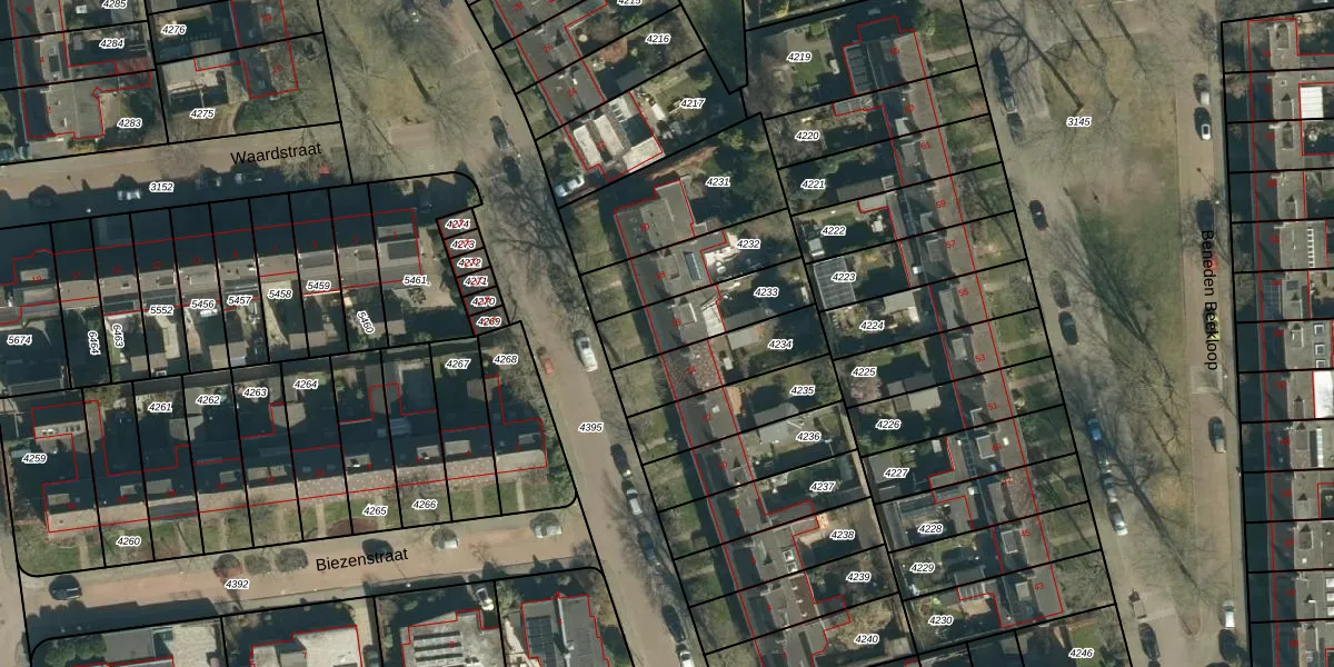 Gebruik de zoekbalk of klik op een perceel voor informatie over de adressen binnen dit perceel.
