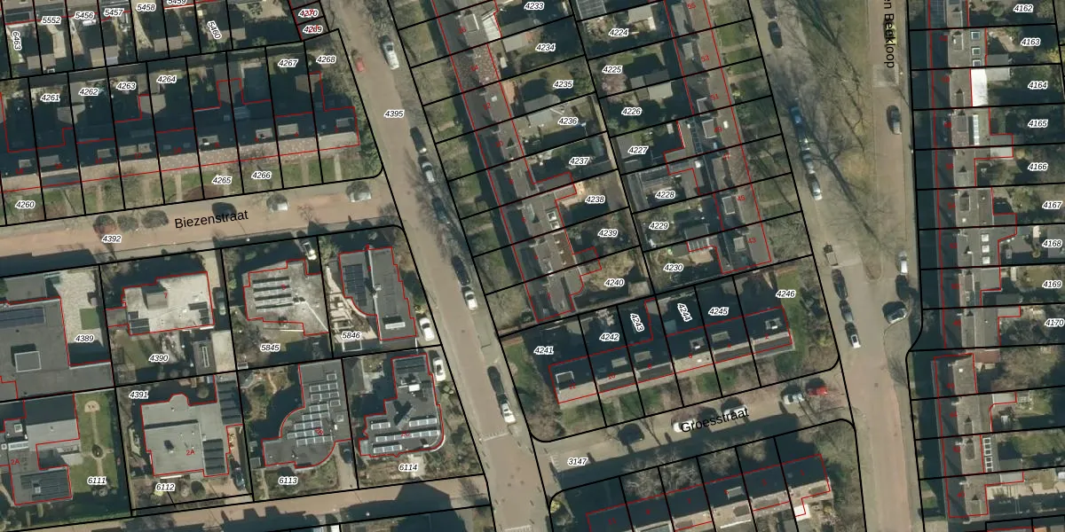 Gebruik de zoekbalk of klik op een perceel voor informatie over de adressen binnen dit perceel.