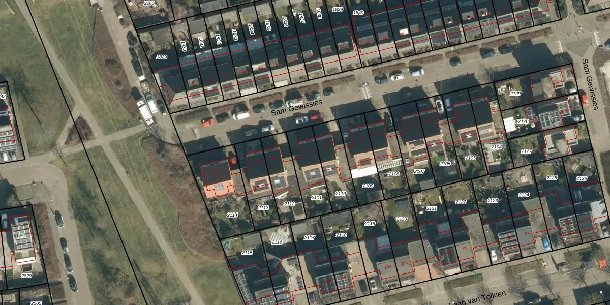 Gebruik de zoekbalk of klik op een perceel voor informatie over de adressen binnen dit perceel.