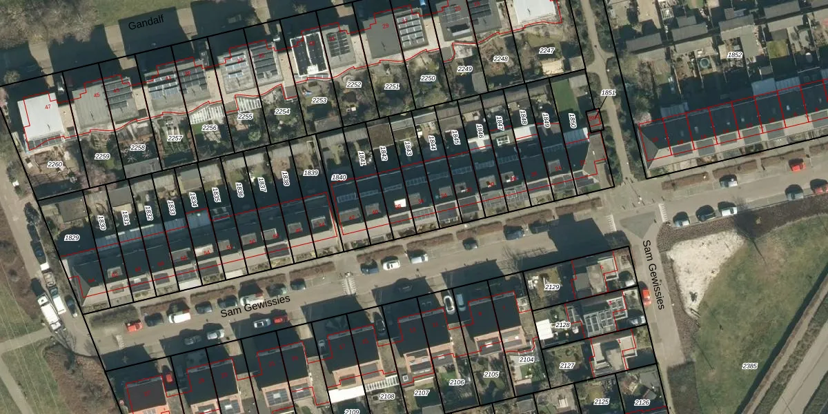 Het perceel waarop Sam Gewissies 36 staat heeft een oppervlakte van 167 m². Dit is een middelgroot perceel. De perceeloppervlakte wordt geregistreerd door het Kadaster. Gedetailleerde informatie over de maten van dit perceel kunt u vinden in het rapport Kadastrale kaart met maatvoering van Sam Gewissies 36.