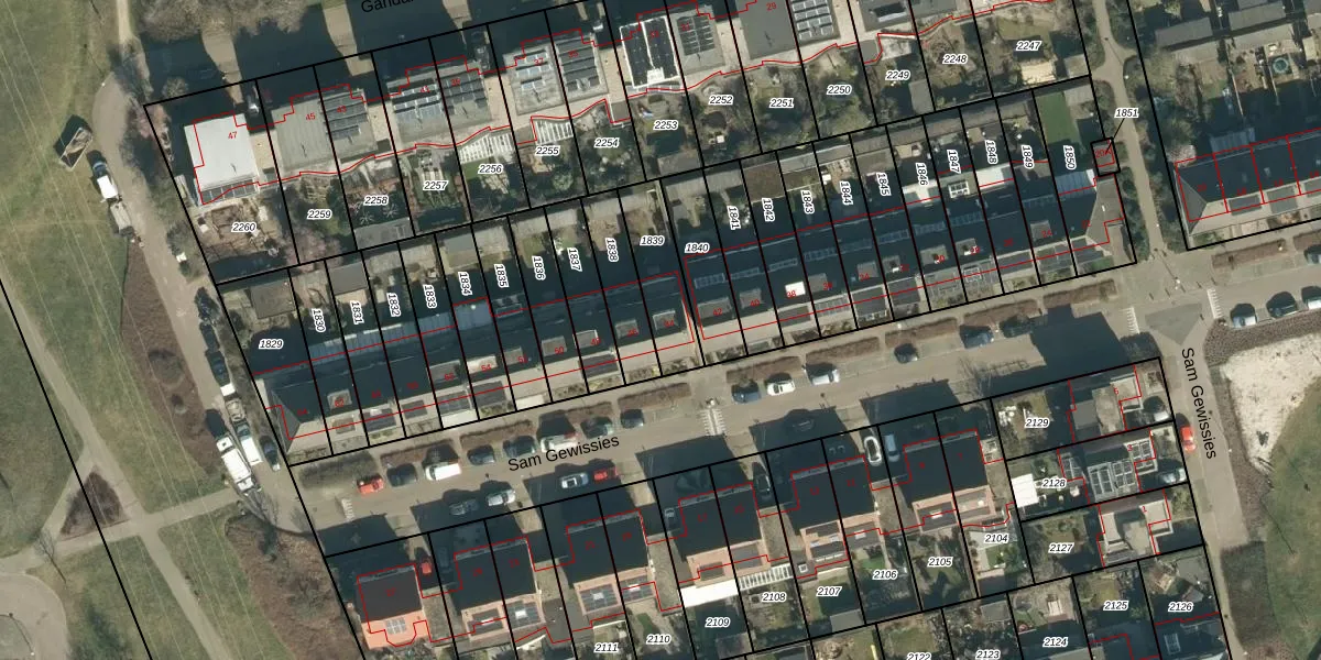 Sam Gewissies 44 is gelegen op kadastraal perceel GDP00E1839. Deze kadastrale aanduiding is uniek en wordt gebruikt door het Kadaster om eigendomsrechten en andere zakelijke rechten vast te leggen. Het perceel maakt onderdeel uit van de kadastrale gemeente Geldrop.