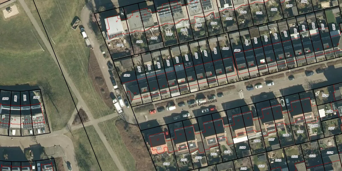Gebruik de zoekbalk of klik op een perceel voor informatie over de adressen binnen dit perceel.