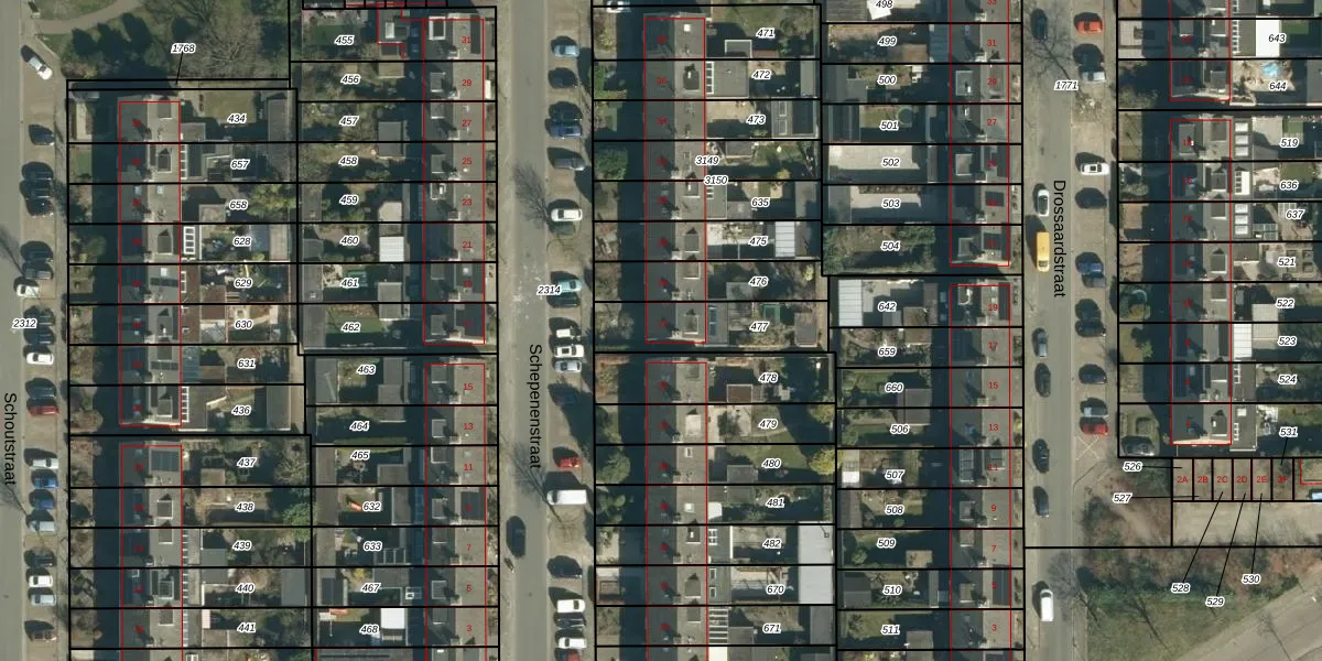 Schepenenstraat 24 is gelegen op kadastraal perceel GDP00E477. Deze kadastrale aanduiding is uniek en wordt gebruikt door het Kadaster om eigendomsrechten en andere zakelijke rechten vast te leggen. Het perceel maakt onderdeel uit van de kadastrale gemeente Geldrop.