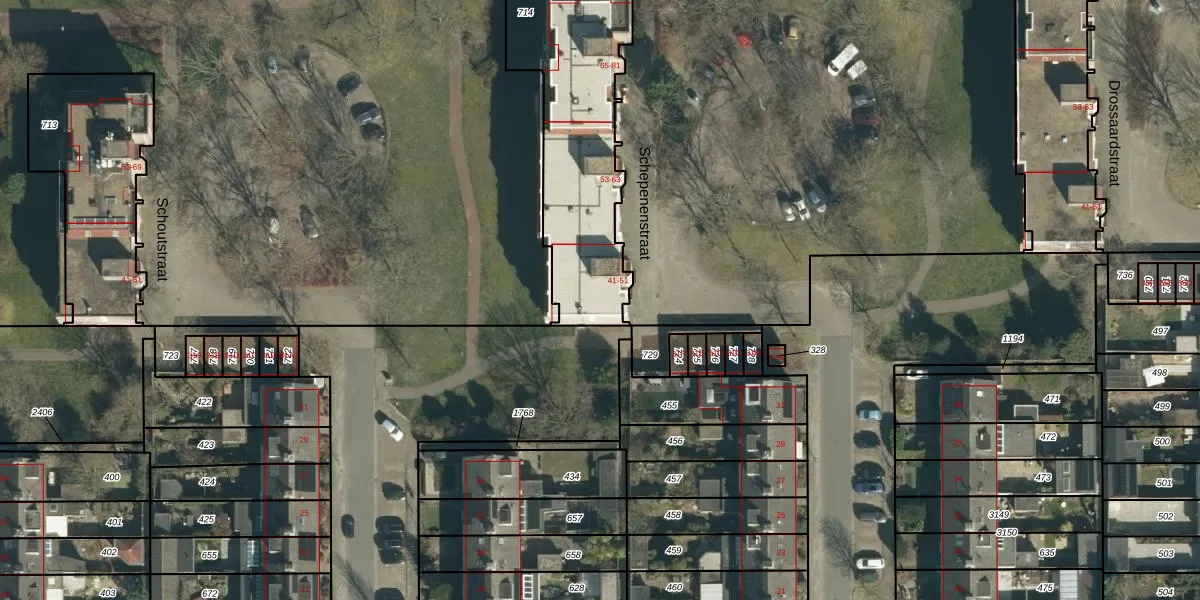 Schepenenstraat 41 is gelegen op kadastraal perceel GDP00E714. Deze kadastrale aanduiding is uniek en wordt gebruikt door het Kadaster om eigendomsrechten en andere zakelijke rechten vast te leggen. Het perceel maakt onderdeel uit van de kadastrale gemeente Geldrop.