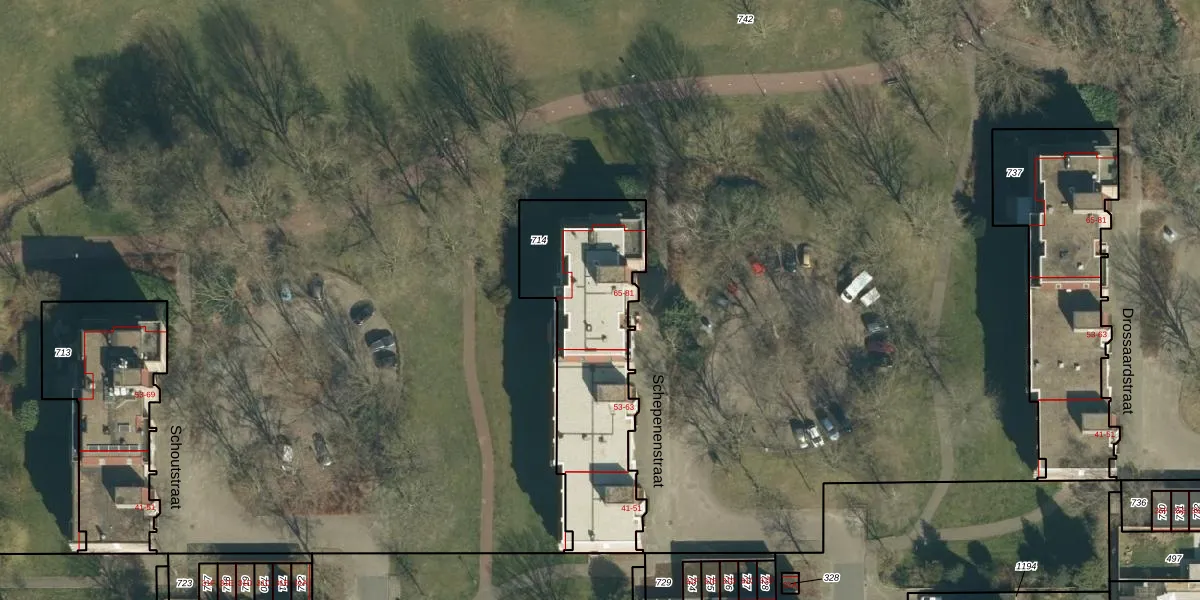 Het perceel waarop Schepenenstraat 71 staat heeft een oppervlakte van 849 m². Dit is een groot perceel. De perceeloppervlakte wordt geregistreerd door het Kadaster. Gedetailleerde informatie over de maten van dit perceel kunt u vinden in het rapport Kadastrale kaart met maatvoering van Schepenenstraat 71.