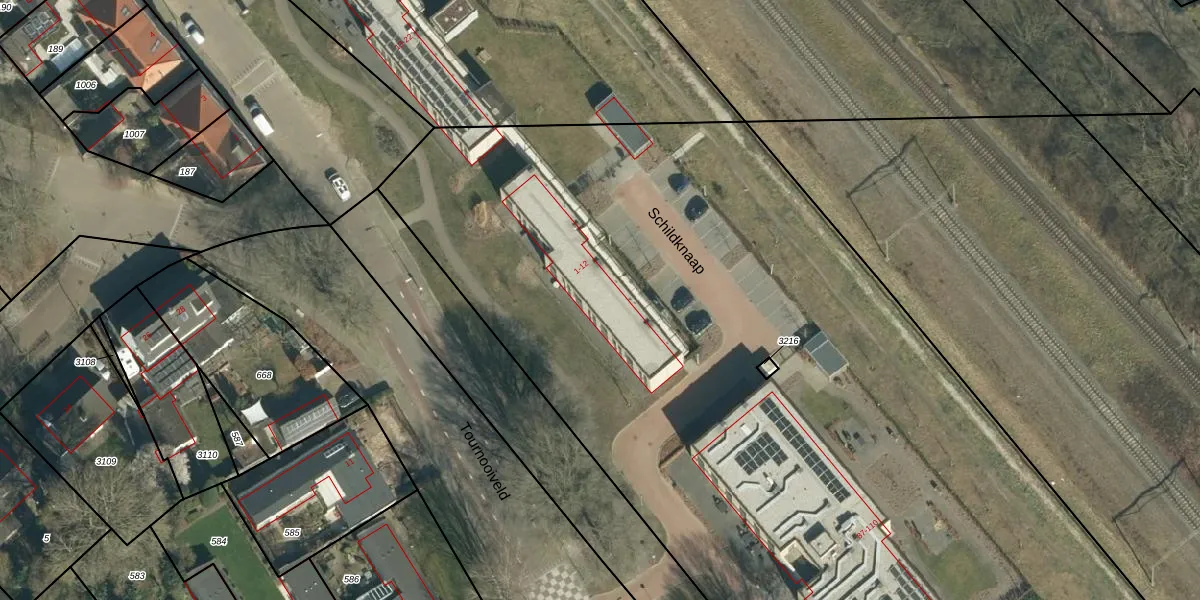 Het perceel waarop Schildknaap 3 staat heeft een oppervlakte van 1,3 ha. Dit is een zeer groot perceel. De perceeloppervlakte wordt geregistreerd door het Kadaster. Gedetailleerde informatie over de maten van dit perceel kunt u vinden in het rapport Kadastrale kaart met maatvoering van Schildknaap 3.