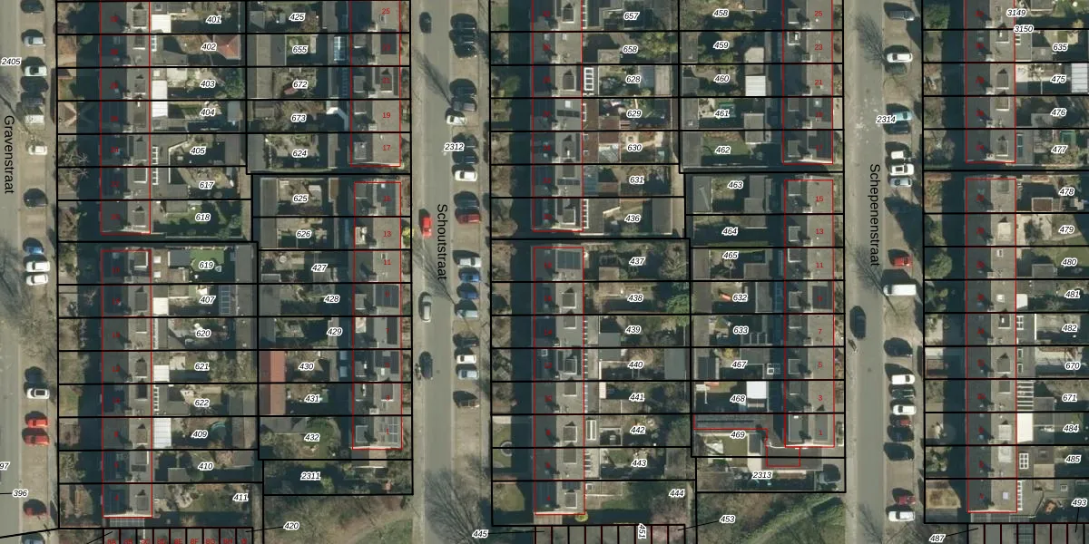 Gebruik de zoekbalk of klik op een perceel voor informatie over de adressen binnen dit perceel.