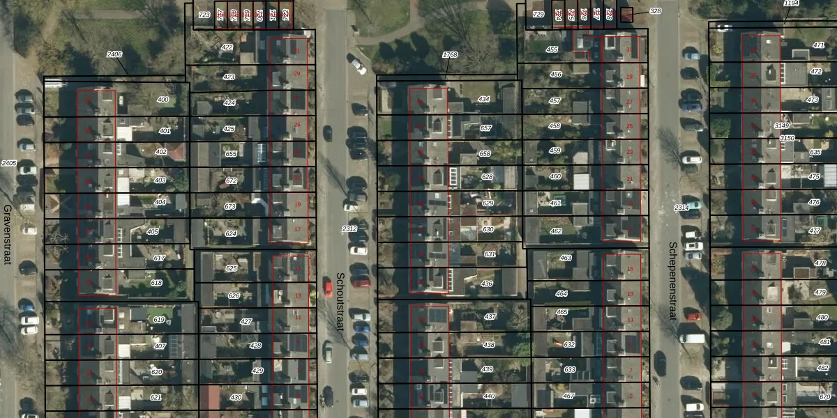 Gebruik de zoekbalk of klik op een perceel voor informatie over de adressen binnen dit perceel.