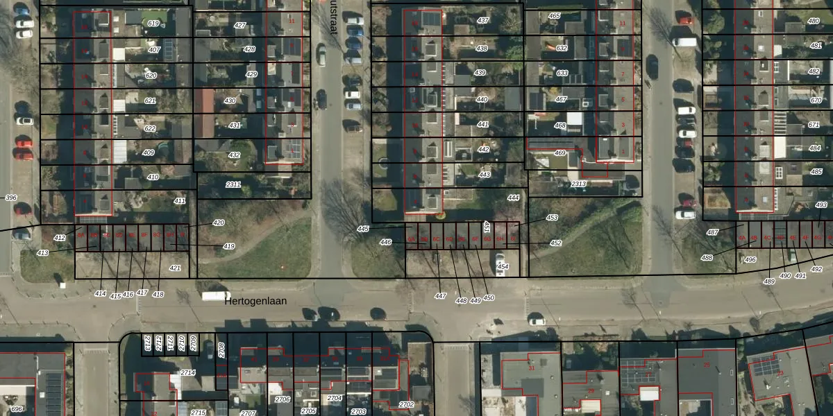Het adres ligt op het perceel GDP00-E-444, dat zich in de kadastrale gemeente Geldrop bevindt. De gemiddelde perceelgrootte in Geldrop is 1101,15 m². Dit perceel is kleiner: de perceeloppervlakte bedraagt 337 m². De grootste perceeloppervlakte in de kadastrale gemeente is 51,6 ha. De kleinste oppervlakte bedraagt 0 m². Er zijn geen andere adressen aanwezig op het perceel. De huidige grenzen van het perceel zijn digitaal in de Basisregistratie Kadaster (BRK) geregistreerd op 09-06-2009.