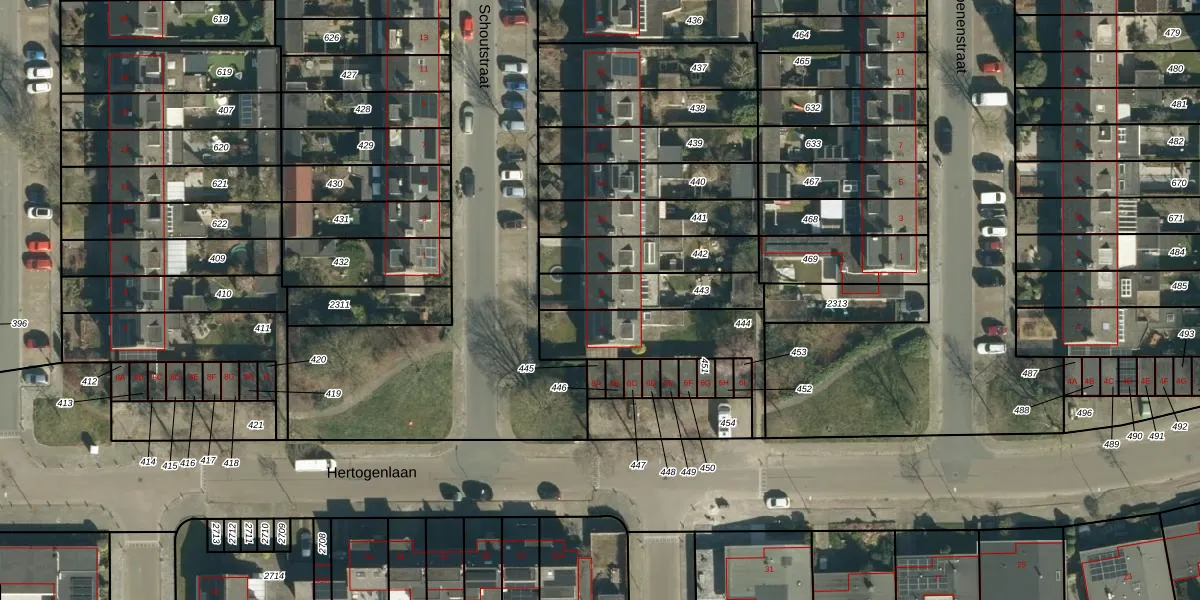 Schoutstraat 6 is gelegen op kadastraal perceel GDP00E443. Deze kadastrale aanduiding is uniek en wordt gebruikt door het Kadaster om eigendomsrechten en andere zakelijke rechten vast te leggen. Het perceel maakt onderdeel uit van de kadastrale gemeente Geldrop.