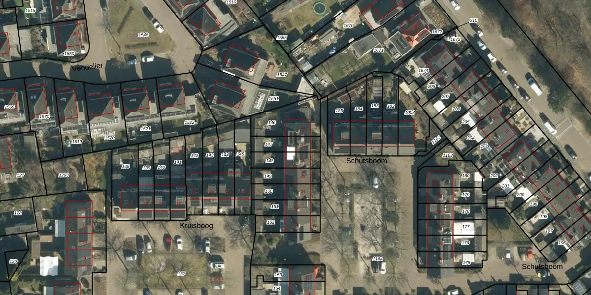 Het perceel waarop Schutsboom 27 staat heeft een oppervlakte van 126 m². Dit is een middelgroot perceel. De perceeloppervlakte wordt geregistreerd door het Kadaster. Gedetailleerde informatie over de maten van dit perceel kunt u vinden in het rapport Kadastrale kaart met maatvoering van Schutsboom 27.
