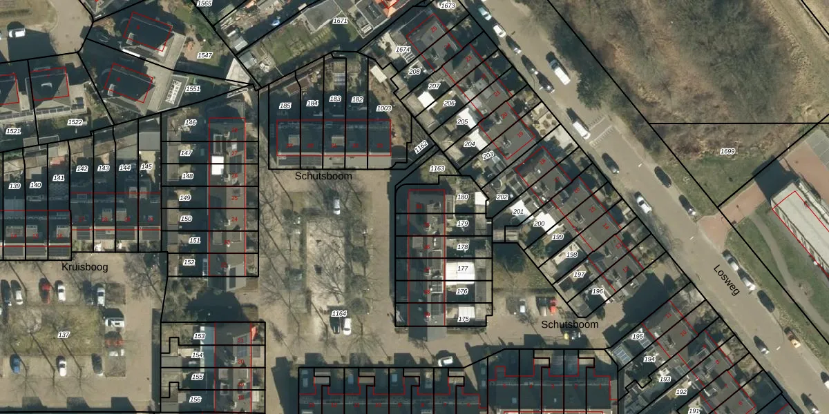 Het perceel waarop Schutsboom 34 staat heeft een oppervlakte van 169 m². Dit is een middelgroot perceel. De perceeloppervlakte wordt geregistreerd door het Kadaster. Gedetailleerde informatie over de maten van dit perceel kunt u vinden in het rapport Kadastrale kaart met maatvoering van Schutsboom 34.