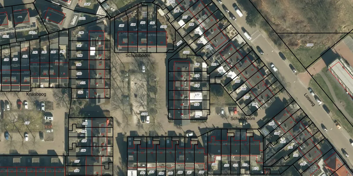 Gebruik de zoekbalk of klik op een perceel voor informatie over de adressen binnen dit perceel.