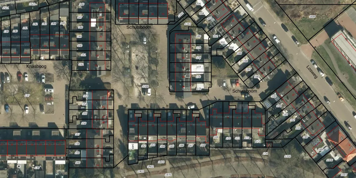 Gebruik de zoekbalk of klik op een perceel voor informatie over de adressen binnen dit perceel.