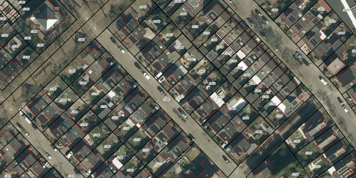 Het perceel waarop Silmarien 12 staat heeft een oppervlakte van 261 m². Dit is een middelgroot perceel. De perceeloppervlakte wordt geregistreerd door het Kadaster. Gedetailleerde informatie over de maten van dit perceel kunt u vinden in het rapport Kadastrale kaart met maatvoering van Silmarien 12.