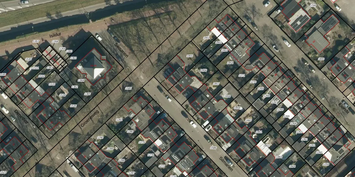 Het perceel waarop Silmarien 20 staat heeft een oppervlakte van 323 m². Dit is een groot perceel. De perceeloppervlakte wordt geregistreerd door het Kadaster. Gedetailleerde informatie over de maten van dit perceel kunt u vinden in het rapport Kadastrale kaart met maatvoering van Silmarien 20.