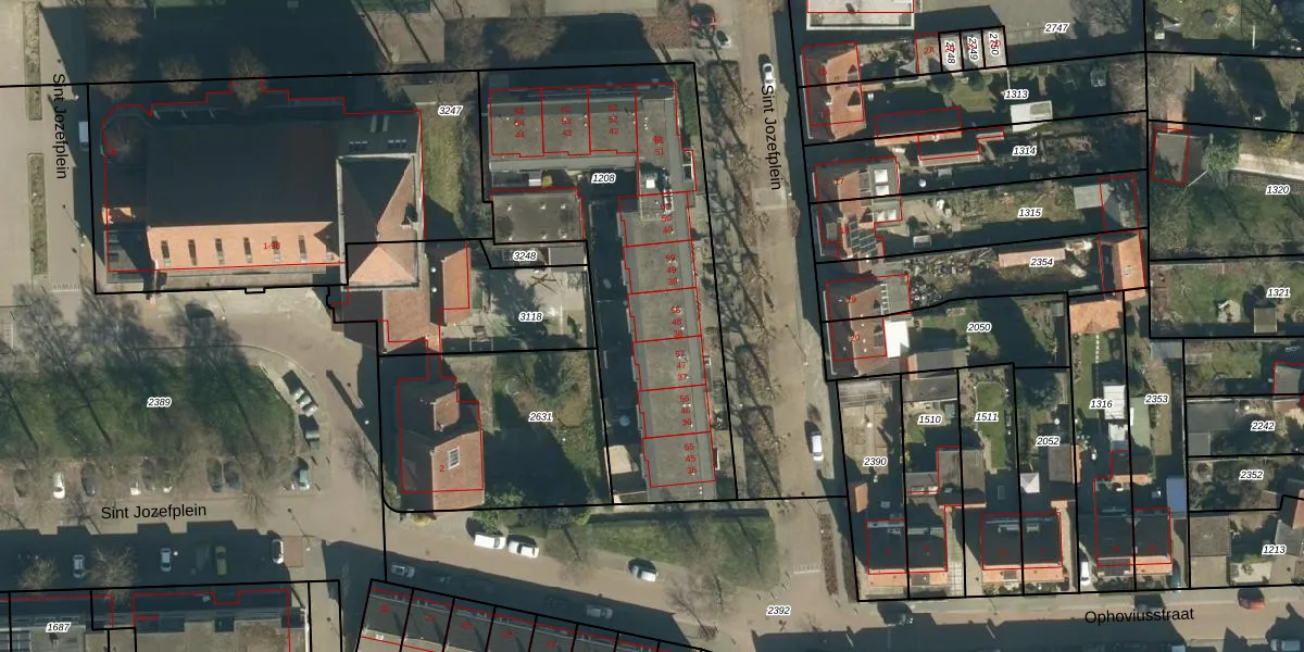 Sint Jozefplein 48 is gelegen op kadastraal perceel GDP00F1208. Deze kadastrale aanduiding is uniek en wordt gebruikt door het Kadaster om eigendomsrechten en andere zakelijke rechten vast te leggen. Het perceel maakt onderdeel uit van de kadastrale gemeente Geldrop.