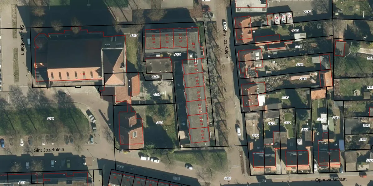Het perceel waarop Sint Jozefplein 58 staat heeft een oppervlakte van 1670 m². Dit is een zeer groot perceel. De perceeloppervlakte wordt geregistreerd door het Kadaster. Gedetailleerde informatie over de maten van dit perceel kunt u vinden in het rapport Kadastrale kaart met maatvoering van Sint Jozefplein 58.