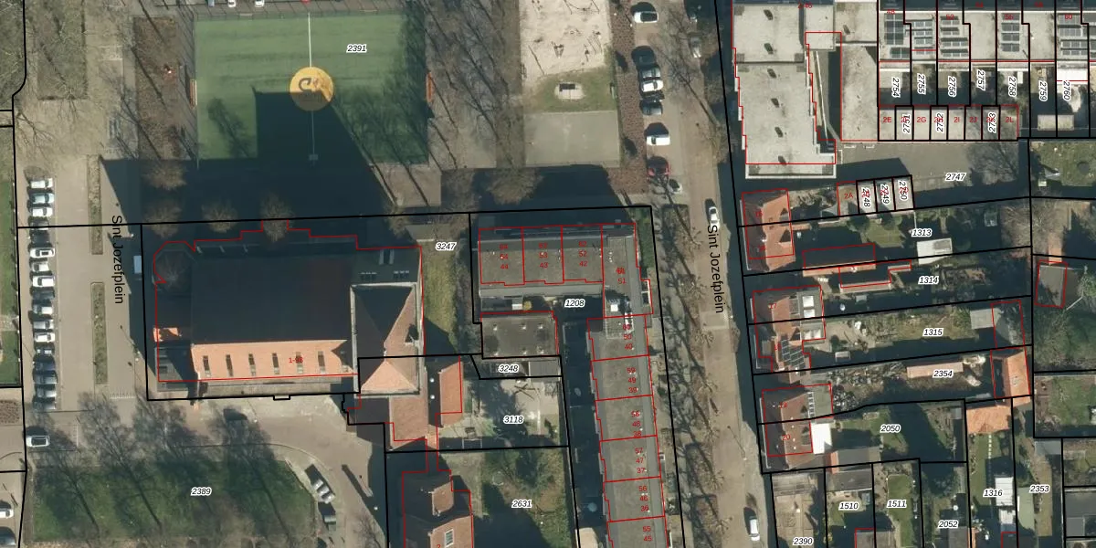 Sint Jozefplein 63 is gelegen op kadastraal perceel GDP00F1208. Deze kadastrale aanduiding is uniek en wordt gebruikt door het Kadaster om eigendomsrechten en andere zakelijke rechten vast te leggen. Het perceel maakt onderdeel uit van de kadastrale gemeente Geldrop.