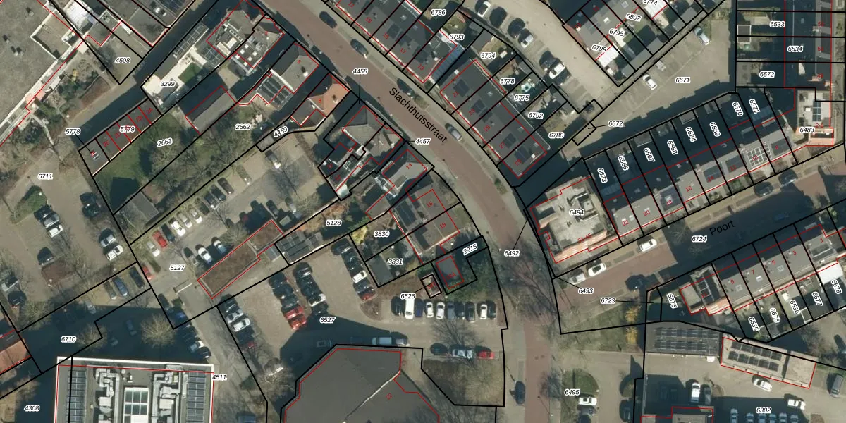 Slachthuisstraat 16 is gelegen op kadastraal perceel GDP00D3830. Deze kadastrale aanduiding is uniek en wordt gebruikt door het Kadaster om eigendomsrechten en andere zakelijke rechten vast te leggen. Het perceel maakt onderdeel uit van de kadastrale gemeente Geldrop.