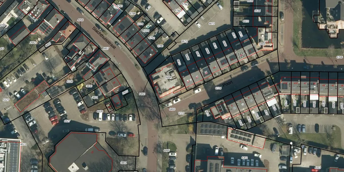 Slachthuisstraat 45 is gelegen op kadastraal perceel GDP00D6494. Deze kadastrale aanduiding is uniek en wordt gebruikt door het Kadaster om eigendomsrechten en andere zakelijke rechten vast te leggen. Het perceel maakt onderdeel uit van de kadastrale gemeente Geldrop.