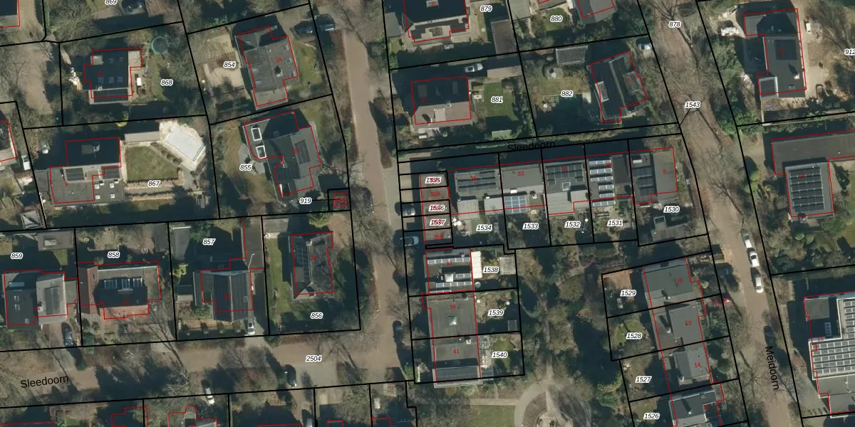 Gebruik de zoekbalk of klik op een perceel voor informatie over de adressen binnen dit perceel.