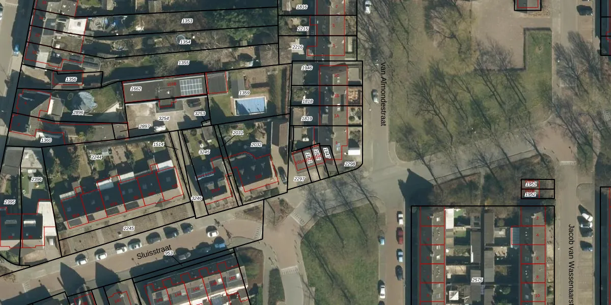 Sluisstraat 103-B is gelegen op kadastraal perceel GDP00F1821. Deze kadastrale aanduiding is uniek en wordt gebruikt door het Kadaster om eigendomsrechten en andere zakelijke rechten vast te leggen. Het perceel maakt onderdeel uit van de kadastrale gemeente Geldrop.