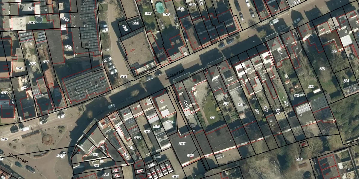 Het perceel waarop Sluisstraat 104 staat heeft een oppervlakte van 308 m². Dit is een groot perceel. De perceeloppervlakte wordt geregistreerd door het Kadaster. Gedetailleerde informatie over de maten van dit perceel kunt u vinden in het rapport Kadastrale kaart met maatvoering van Sluisstraat 104.