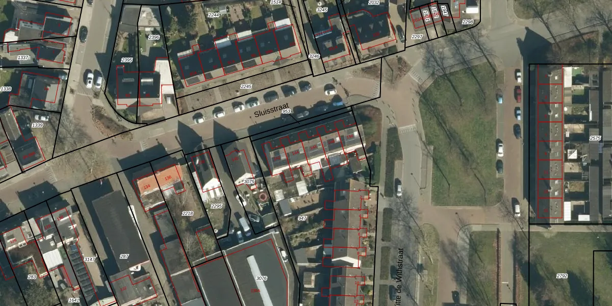 Het perceel waarop Sluisstraat 146 staat heeft een oppervlakte van 2375 m². Dit is een zeer groot perceel. De perceeloppervlakte wordt geregistreerd door het Kadaster. Gedetailleerde informatie over de maten van dit perceel kunt u vinden in het rapport Kadastrale kaart met maatvoering van Sluisstraat 146.