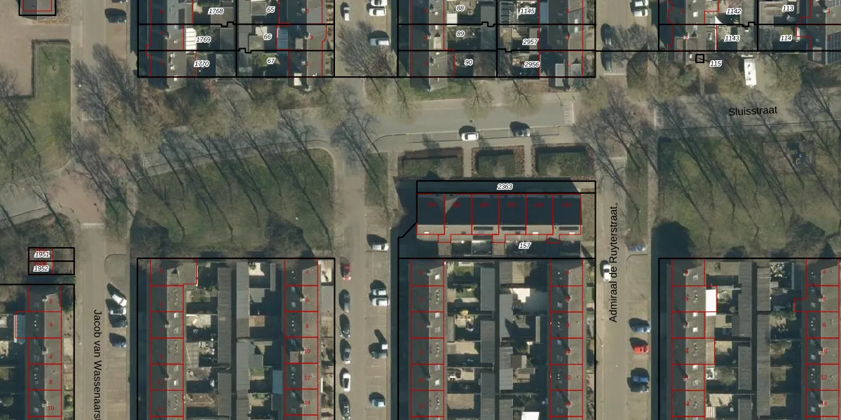 Het perceel waarop Sluisstraat 154 staat heeft een oppervlakte van 690 m². Dit is een groot perceel. De perceeloppervlakte wordt geregistreerd door het Kadaster. Gedetailleerde informatie over de maten van dit perceel kunt u vinden in het rapport Kadastrale kaart met maatvoering van Sluisstraat 154.
