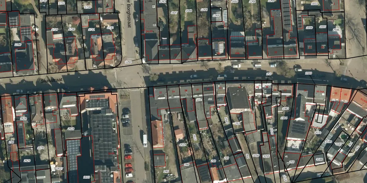 Het perceel waarop Sluisstraat 36 staat heeft een oppervlakte van 377 m². Dit is een groot perceel. De perceeloppervlakte wordt geregistreerd door het Kadaster. Gedetailleerde informatie over de maten van dit perceel kunt u vinden in het rapport Kadastrale kaart met maatvoering van Sluisstraat 36.