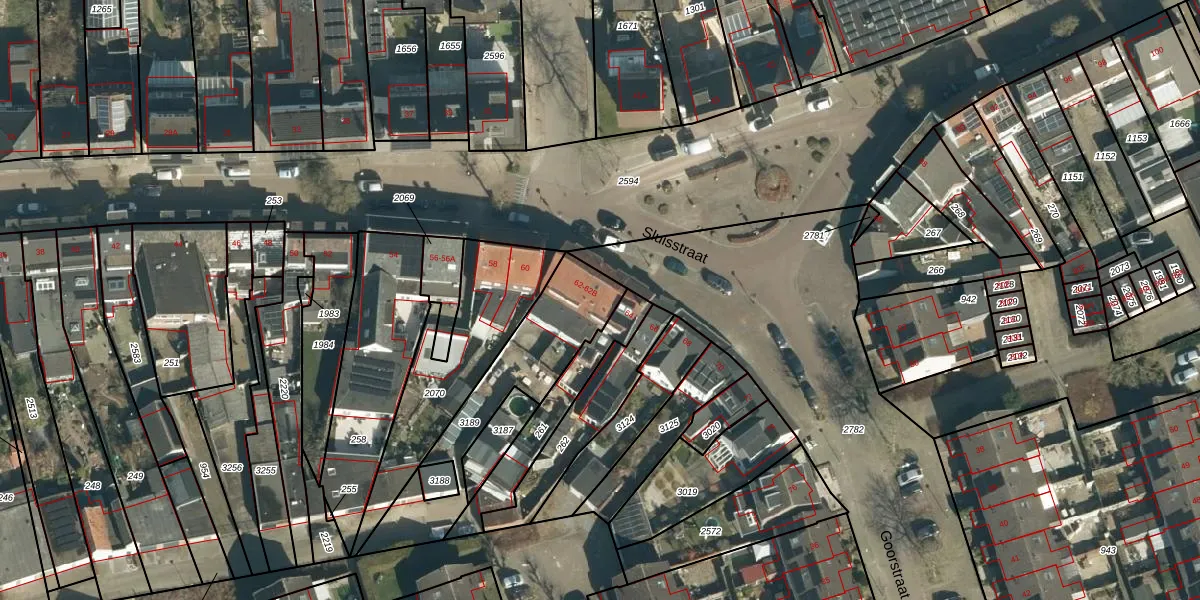 Het perceel waarop Sluisstraat 62-C staat heeft een oppervlakte van 484 m². Dit is een groot perceel. De perceeloppervlakte wordt geregistreerd door het Kadaster. Gedetailleerde informatie over de maten van dit perceel kunt u vinden in het rapport Kadastrale kaart met maatvoering van Sluisstraat 62-C.