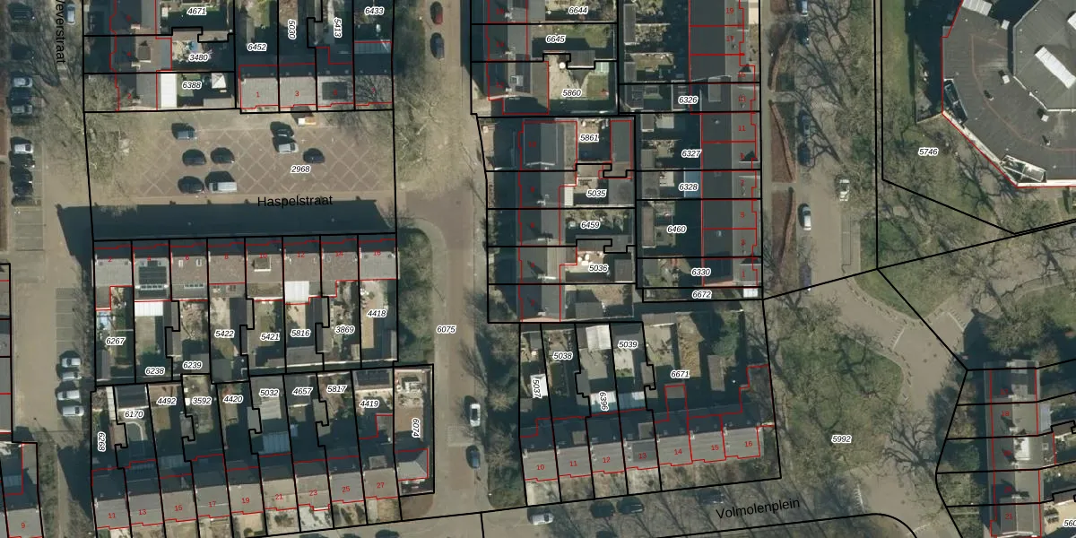 Gebruik de zoekbalk of klik op een perceel voor informatie over de adressen binnen dit perceel.