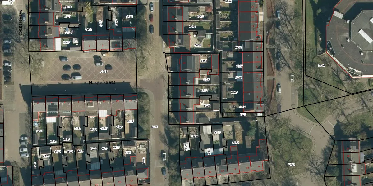 Gebruik de zoekbalk of klik op een perceel voor informatie over de adressen binnen dit perceel.