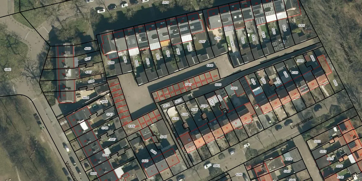 Spoelstraat 55-G is gelegen op kadastraal perceel GDP00C6307. Deze kadastrale aanduiding is uniek en wordt gebruikt door het Kadaster om eigendomsrechten en andere zakelijke rechten vast te leggen. Het perceel maakt onderdeel uit van de kadastrale gemeente Geldrop.